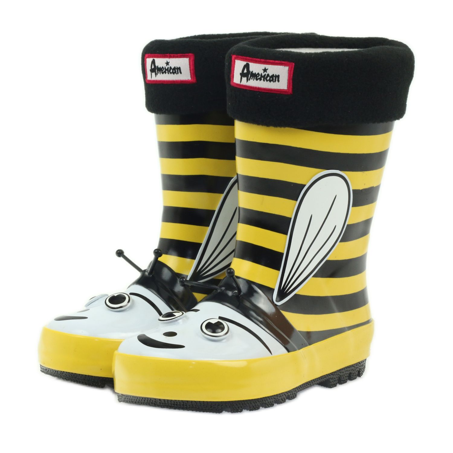 American Club American Club Cizme americane de ploaie branț pentru șosete pentru copii negru galben