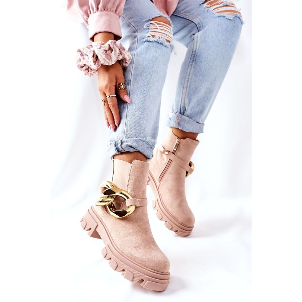 S. Cizme Chelsea izolate pentru femei Barski - bej cu un lanț detașabil