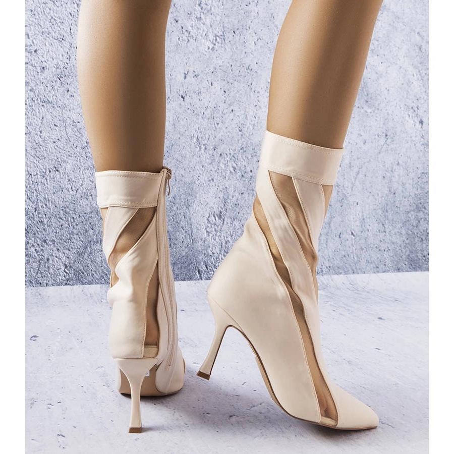 Elegante, cizme pentru femei pe un călcâi înalt, care a adăugat prospețime oricărei stilizări. Modelul cu un nas strâns subțire optic subțire, iar inserțiile de tăiere și transparentă la modă îi conferă un personaj modern. Partea superioară ajunge la gleznă, sunt fixate cu un fermoar practic.