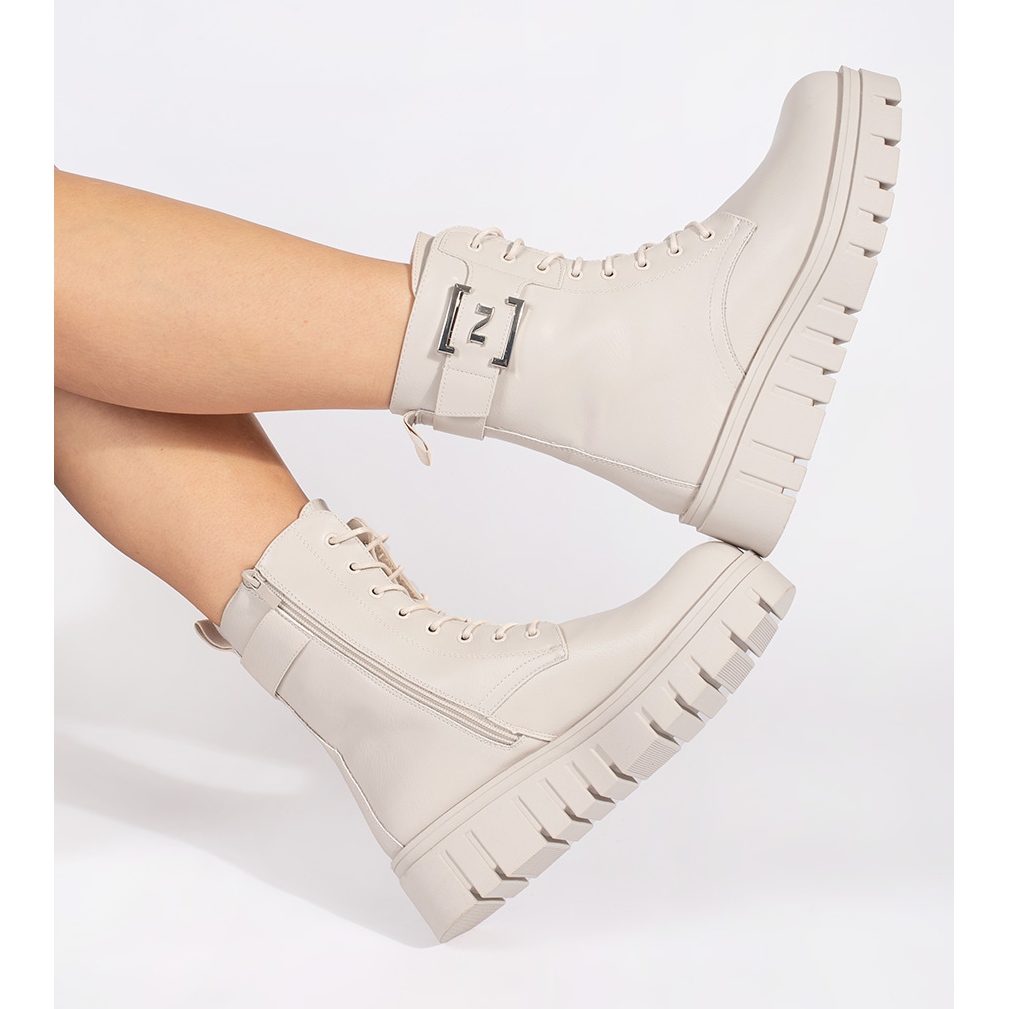 Seastar Seastar Cizme bej cu șireturi pe platformă