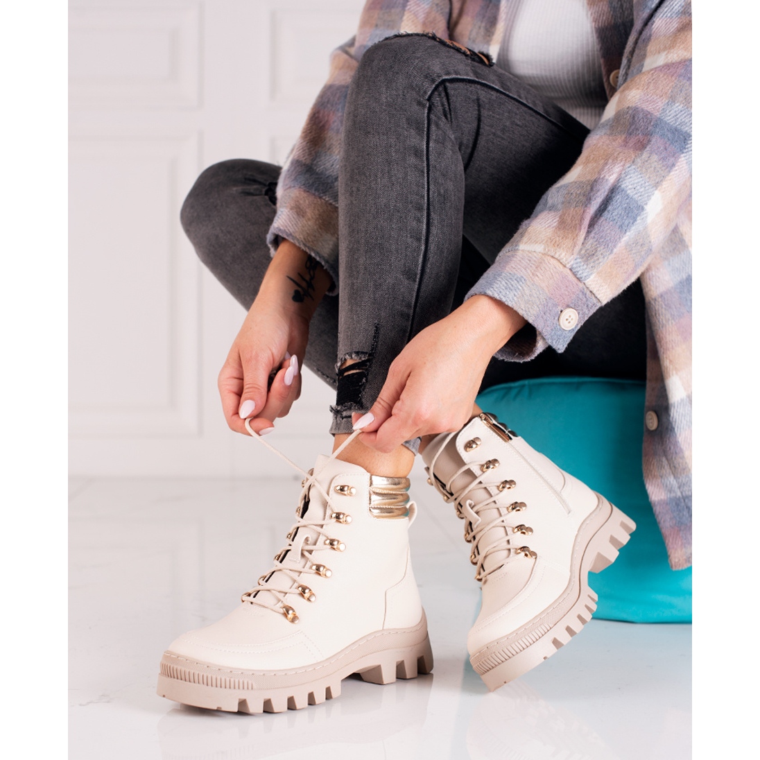 Cizmele trapper bej de la W. Potocki sunt o alegere perfecta pentru sezonul toamna/iarna, care imbina functionalitatea si designul la moda. Acești pantofi de damă stilați se remarcă printr-un vârf rotund și un toc moale, încorporat, care asigură confort pe tot parcursul zilei.