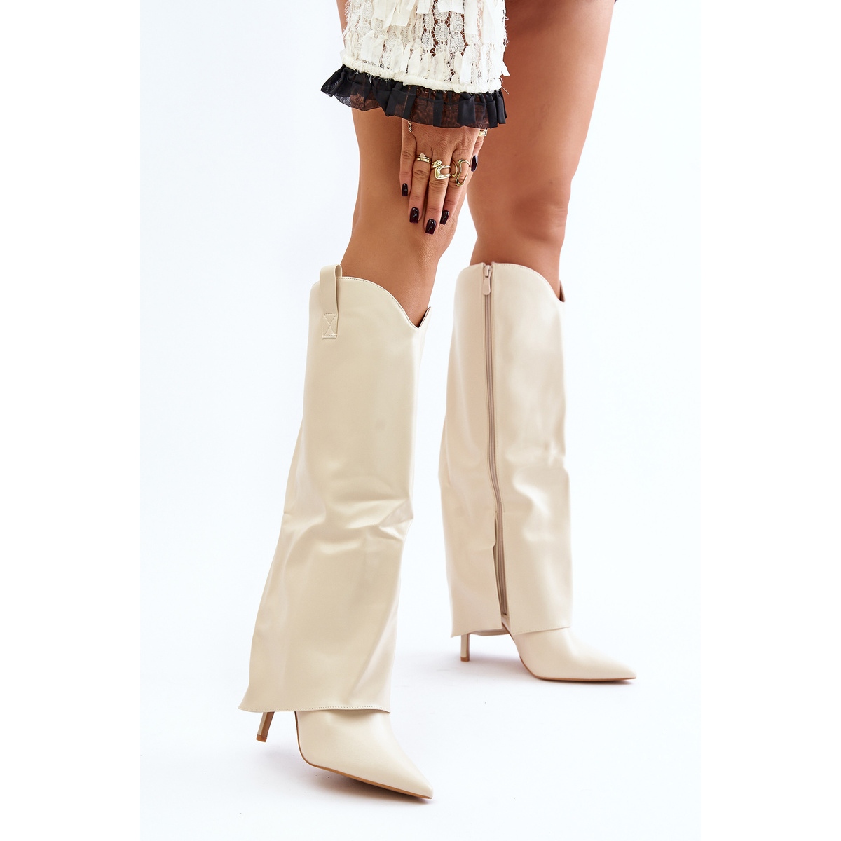 - Model: Cizme cu toc înalt cu partea superioară răsturnată