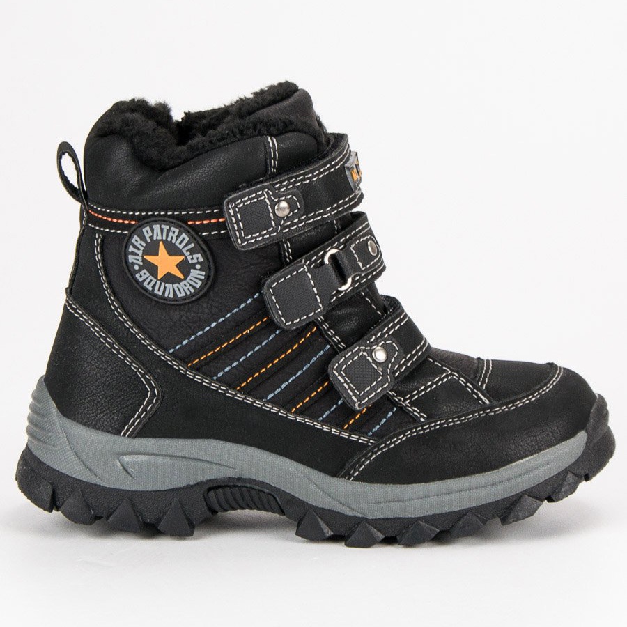 American Club Black – pantofi caldi cu velcro pentru băieți