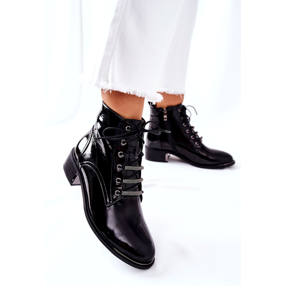 Botinele D&A Reflection sunt alegerea perfectă pentru femeile care apreciază aspectul și confortul la modă. Modelul este disponibil într-o culoare neagră elegantă, care se potrivește perfect cu diverse stiluri. Închiderea cu fermoar și detaliile cu șireturi permit îmbrăcarea și ajustarea cu ușurință la picior.