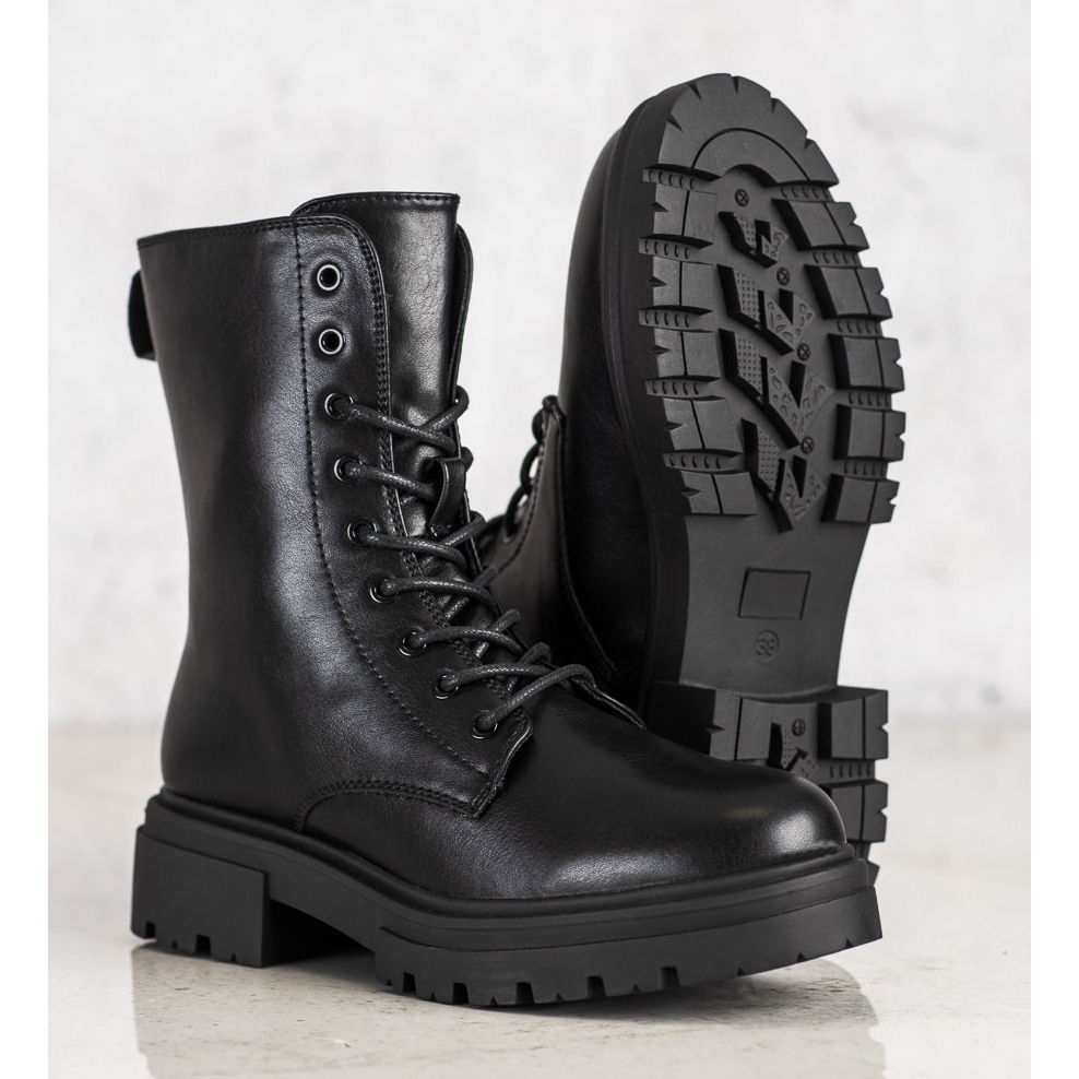 Va prezentam cizme bovver izolate, din piele ecologica de la Evento, care se potrivesc perfect tendintelor stilului casual si rock. Aceste botine negre sunt o alegere perfecta pentru zilele de toamna si iarna cand vrem sa imbinam confortul cu un look la moda.