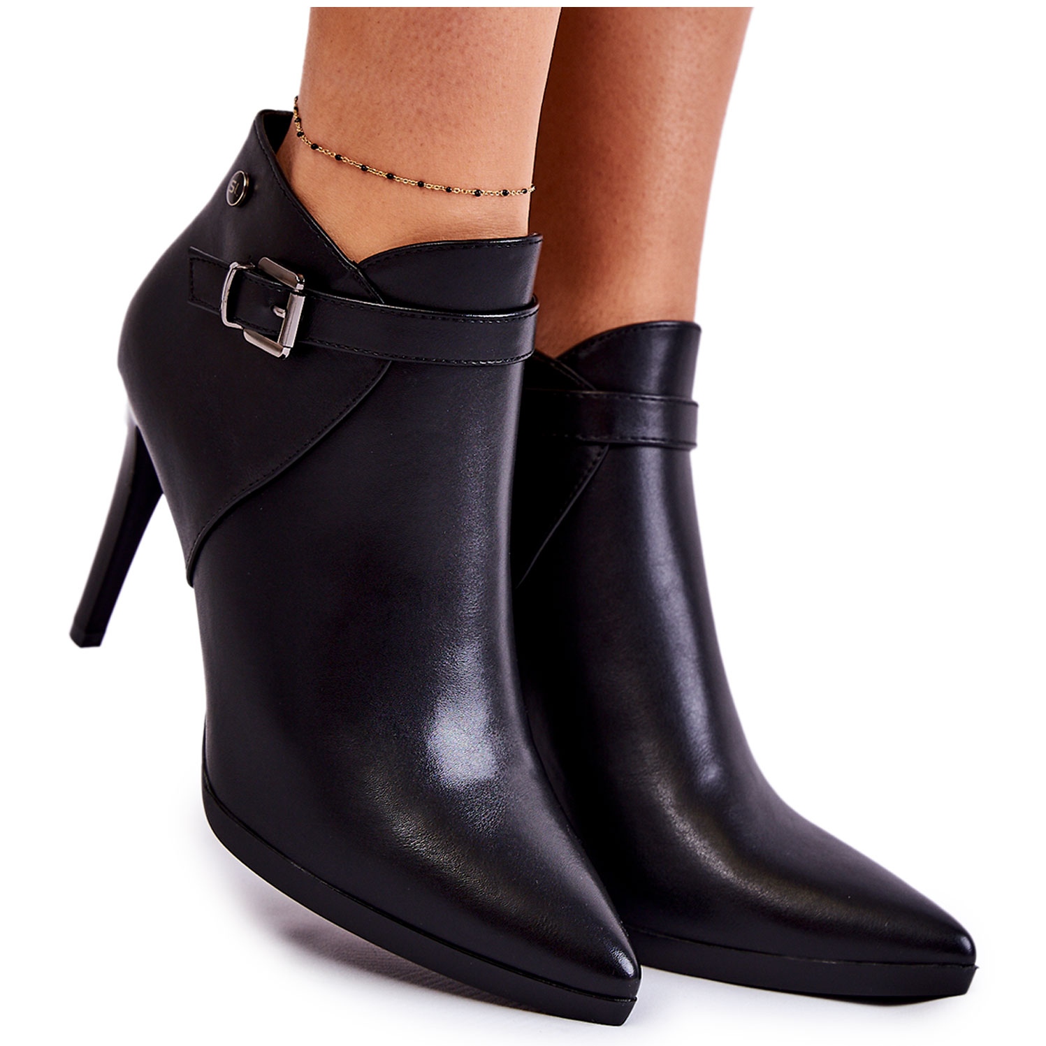 Descoperiți eleganța și confortul cu botinele izolate de damă cu toc înalt de la Sergio Leone. Aceste botine negre, stilate, sunt confecționate din piele ecologică de înaltă calitate, ceea ce le face atât practice, cât și ecologice. Datorită fermoarului de pe partea superioară, încălțarea pantofilor devine extrem de ușoară și confortabilă, iar decorul subtil de pe partea superioară le conferă un caracter unic.