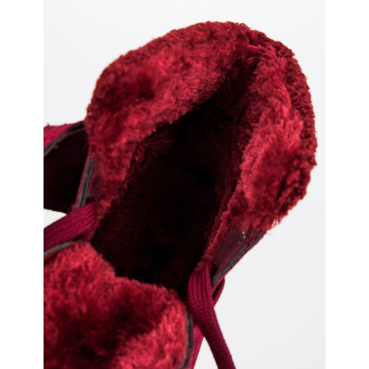 Cizmele izolate visiniu sunt alegerea perfecta pentru toate femeile care doresc sa combine confortul cu un look la moda in zilele reci. Acești pantofi impresionanți într-o culoare roșu intens și visiniu încântă prin stilul și funcționalitatea lor. O pană înaltă de 7 cm și o platformă de 4 cm într-o culoare neagră contrastantă adaugă lejeritate și fac fiecare stil unic.