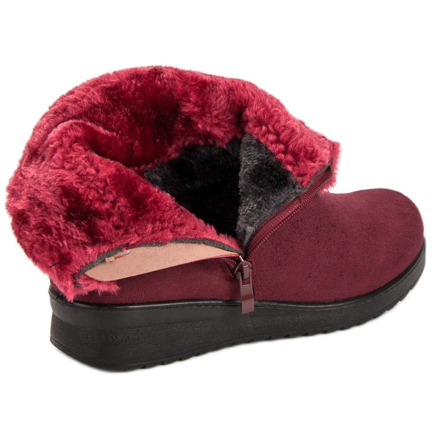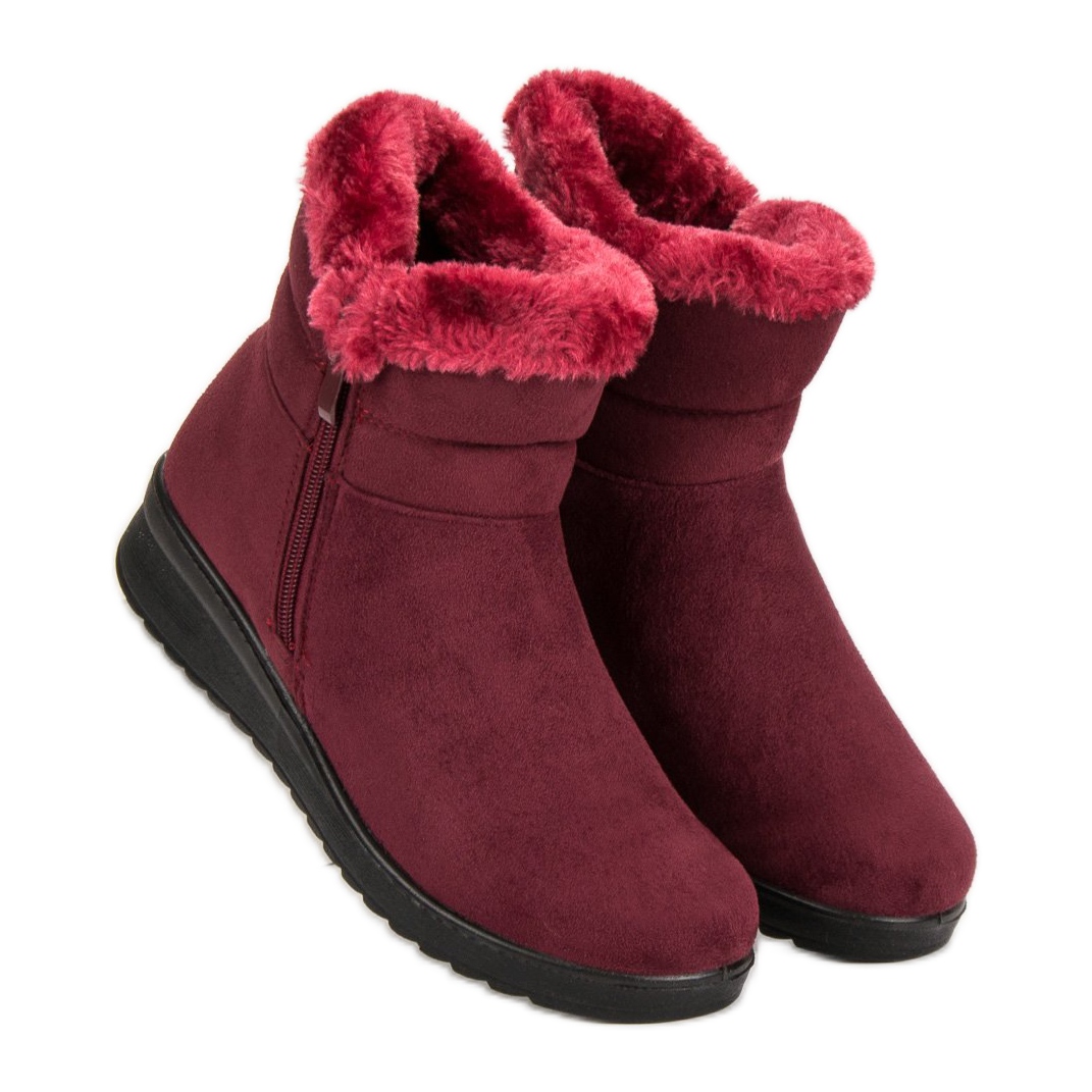 Botinele calde de piele intoarsa in rosu sunt alegerea perfecta pentru femeile care doresc sa combine confortul cu un look la moda. Acești pantofi stabili, în stil sportiv, sunt un adevărat clasic, care se va potrivi perfect cu orice stil de tranziție. Datorită blanii ecologice moale, cizmele înfășoară piciorul, oferind nu numai căldură, ci și confort în utilizarea de zi cu zi.