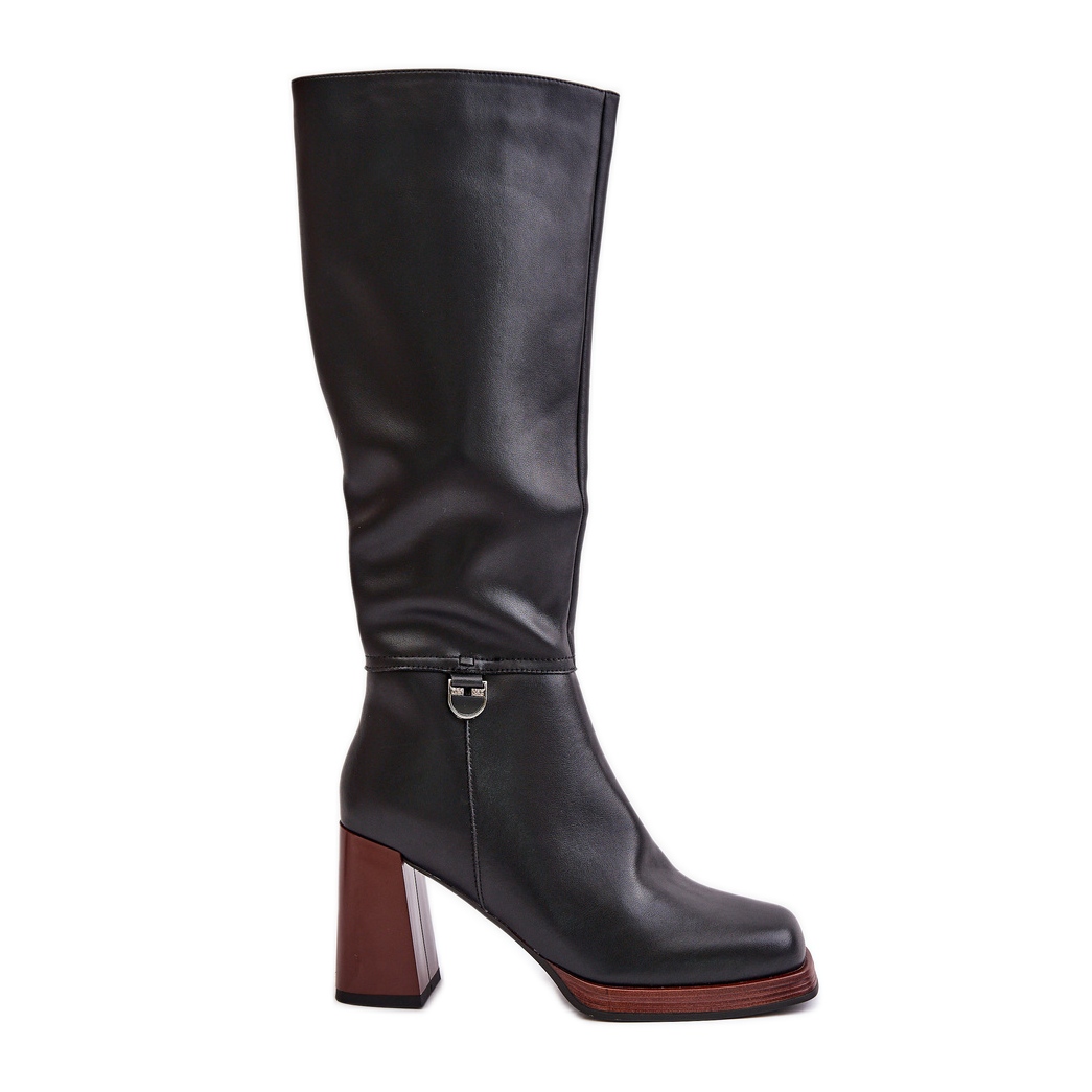 S.Barski S.Barski Cizme calde elegante din piele cu toc inalt D&A JC42-39 Negru