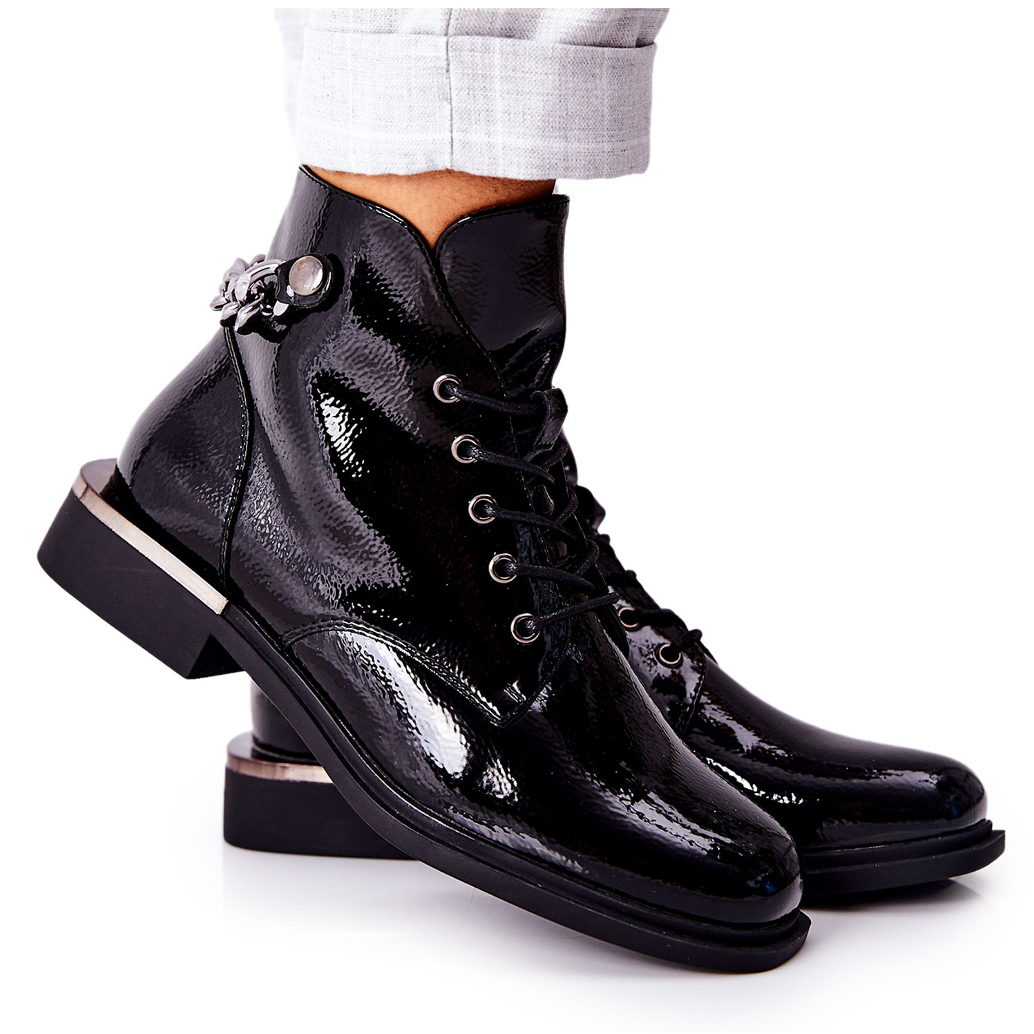 Modelul BT405 a fost conceput pentru zilele mai reci, oferind confort termic datorita blanii delicate din interior. Cizmele au fermoar practic și pot fi ajustate datorită șiretului, care permite o potrivire perfectă pe picior. În plus, lanțul decorativ din spate le conferă un caracter unic.