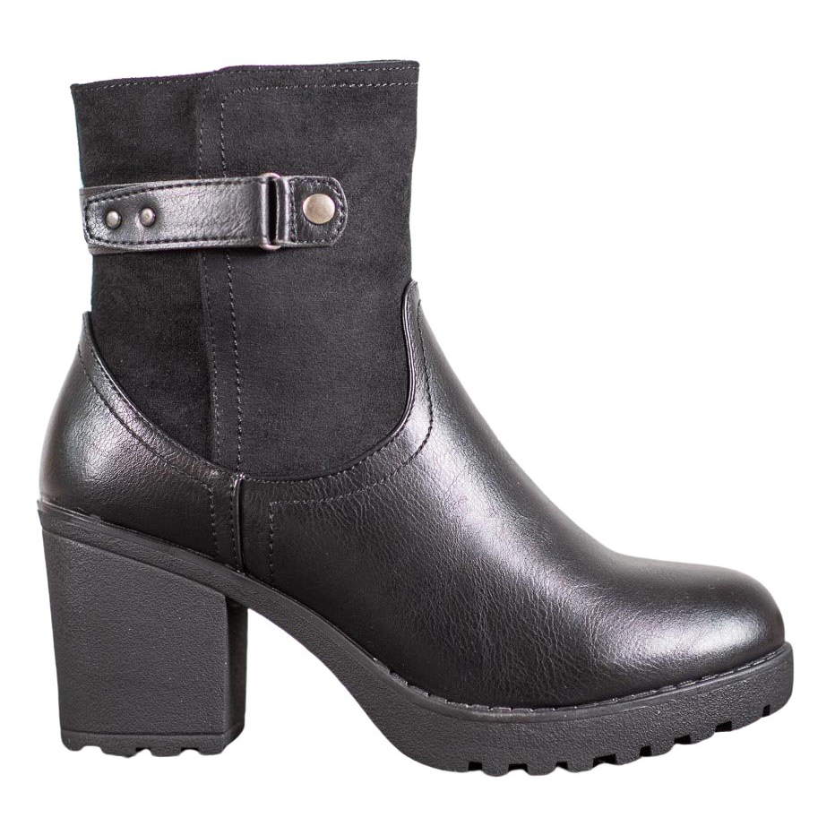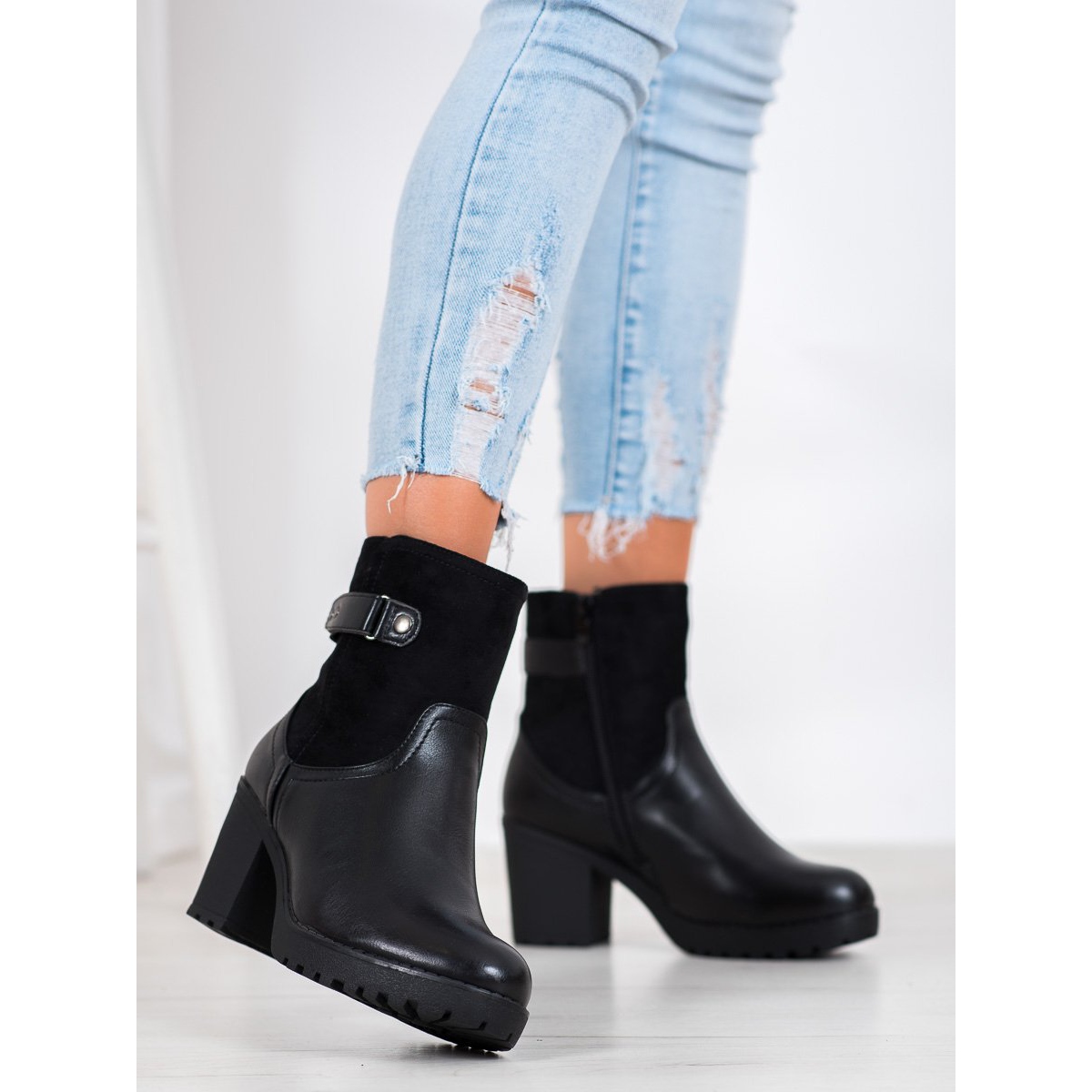 Faceți cunoștință cu botinele calde de la J. Star - perfecte pentru zilele mai reci! Aceste botine negre elegante de damă combină confortul cu designul la modă, făcându-le o potrivire perfectă pentru stilul casual și la modă. Confectionate din piele ecologica si decorate partial cu finisaj piele intoarsa, sunt un plus elegant pentru orice stil de toamna-iarna.
