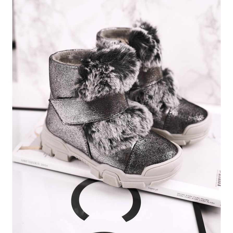 **Cizme pentru copii Apawwa blană cu velcro, gri Husar**
