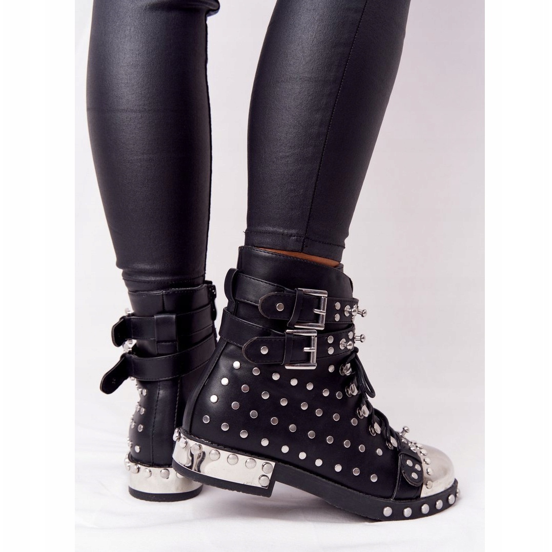 Detalii precum strasurile si cataramele le dau un caracter unic, potrivindu-se cu diverse stiluri, de la glam rock la grunge. Un toc plat de 3 cm înălțime și o înălțime superioară de 15 cm garantează o purtare confortabilă, iar închiderea cu șireturi permite o potrivire perfectă pe picior.