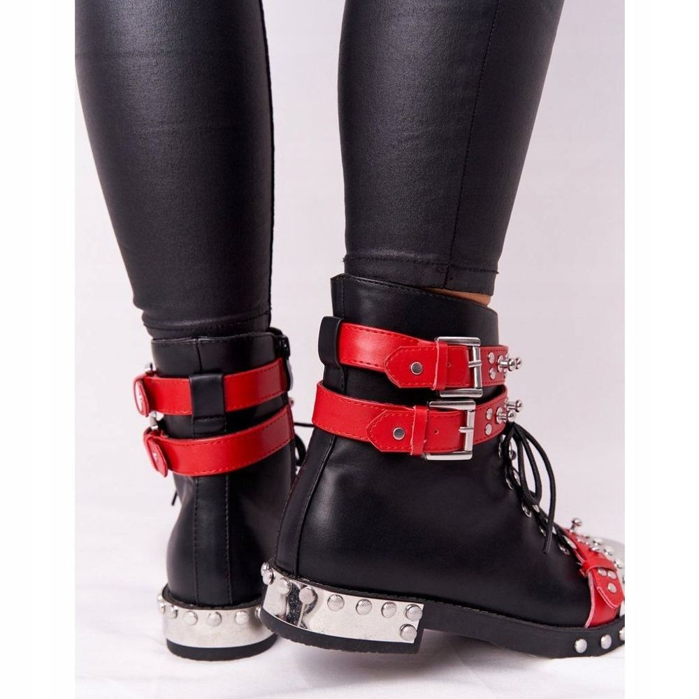 Detalii: Cizme calde pentru femei Muncitori cu pietre de stras negru și roșu Lu Boo