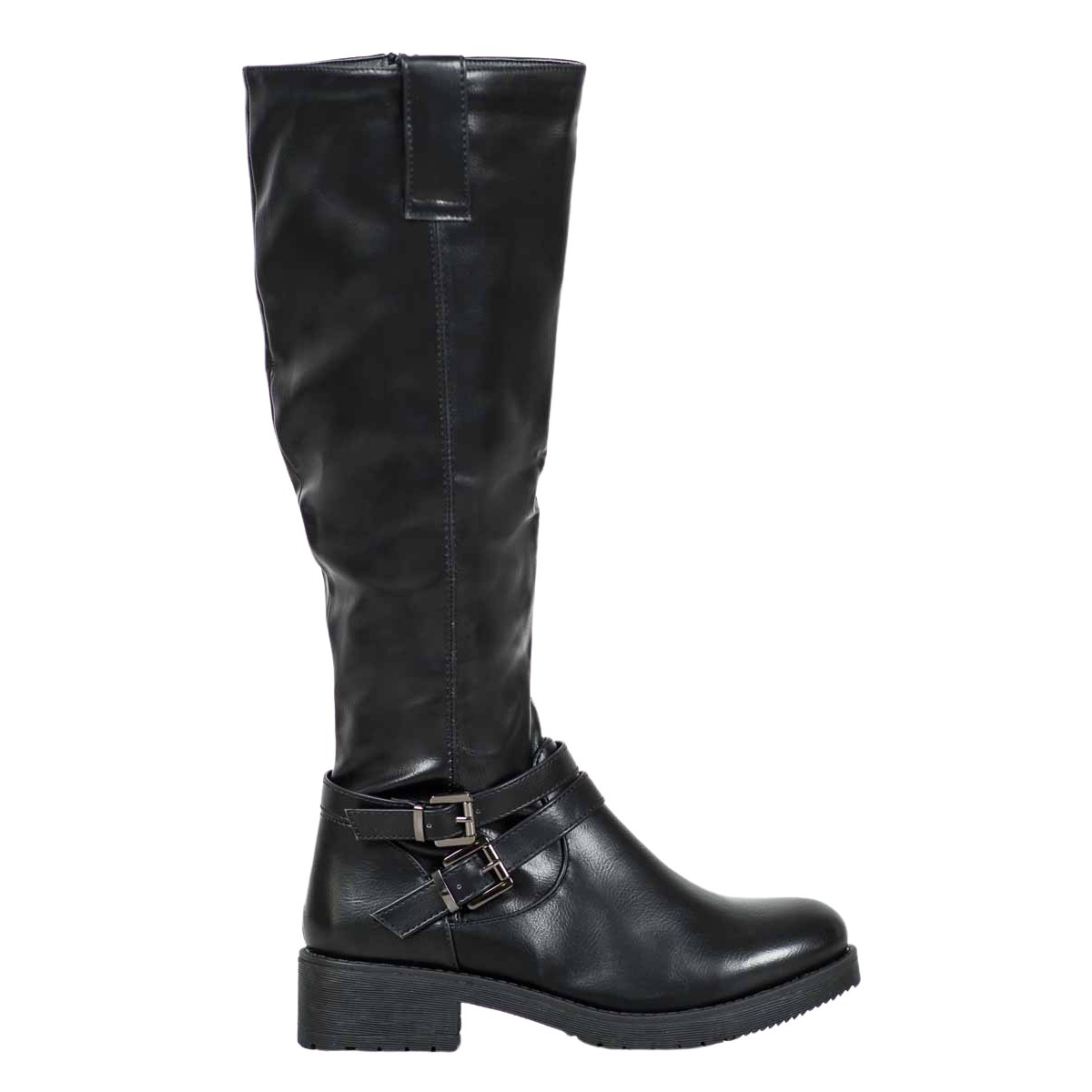 Cizmele se remarcă prin curele și catarame decorative care le conferă un caracter unic. Lățimea superioară de 40 cm și înălțimea până la genunchi le fac să se potrivească perfect piciorului tău, iar stilul lor casual și clasic le face perfecte atât pentru utilizarea de zi cu zi, cât și pentru ieșirile de seară.