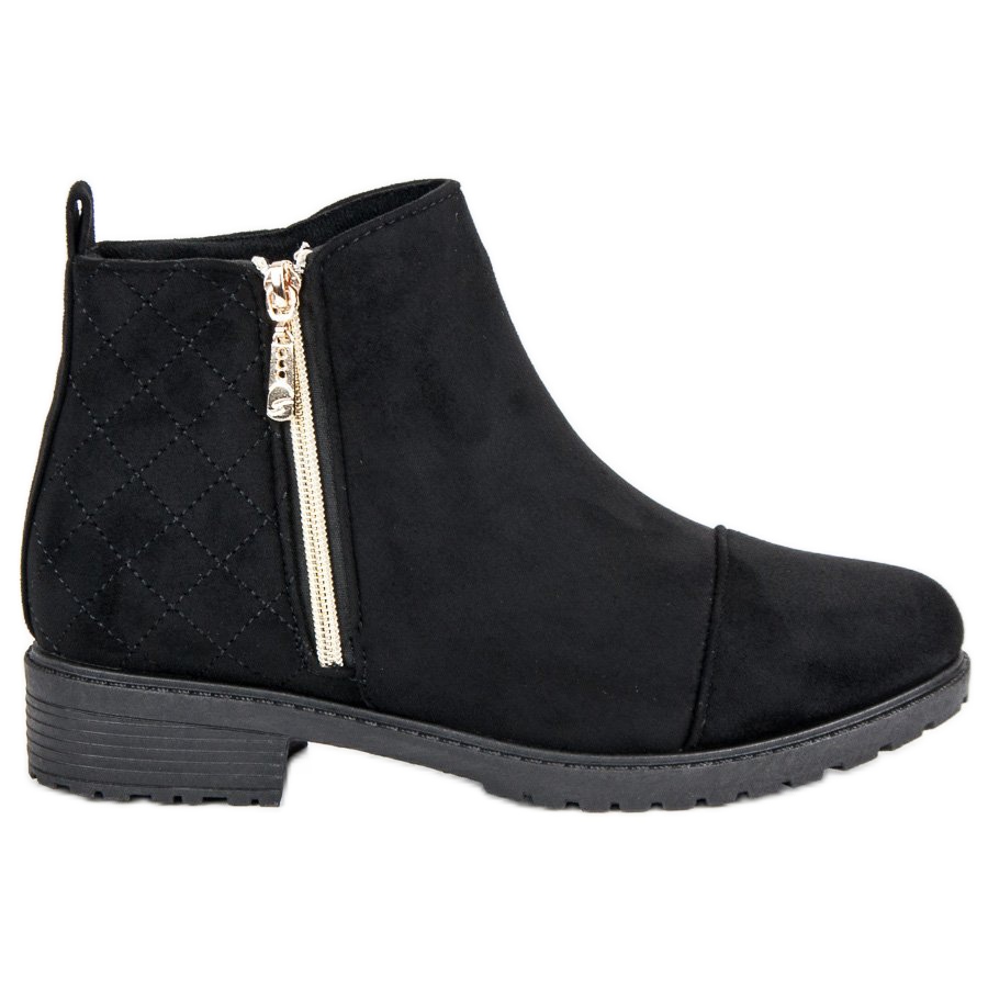 Fermoarul, situat pe lateral, facilitează cumpărarea și scoaterea pantofilor, lucru deosebit de apreciat în utilizarea de zi cu zi. Botinele negre se remarcă prin stilul lor unic datorită matlasării și fermoarului auriu, îmbinând feminitatea cu modernitatea. Interiorul ghetelor asigură confort, iar talpa flexibilă izolează bine terenul denivelat, ceea ce mărește confortul la purtare.