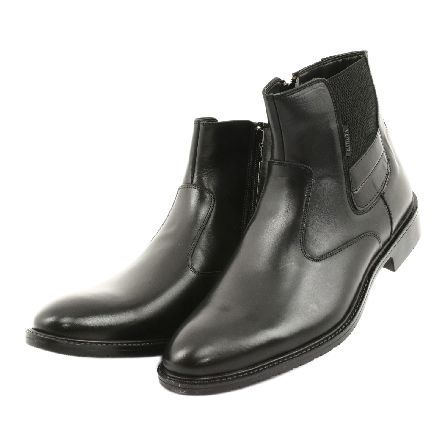 Botinele Badura 4797 se caracterizează printr-o parte superioară standard, ceea ce le face să se potrivească perfect atât cu un costum formal, cât și cu ținute casual, de exemplu cu o cămașă sau blugi. Fermoarul clasic îl face ușor de pus și scos, ceea ce reprezintă un avantaj suplimentar pentru bărbații activi.