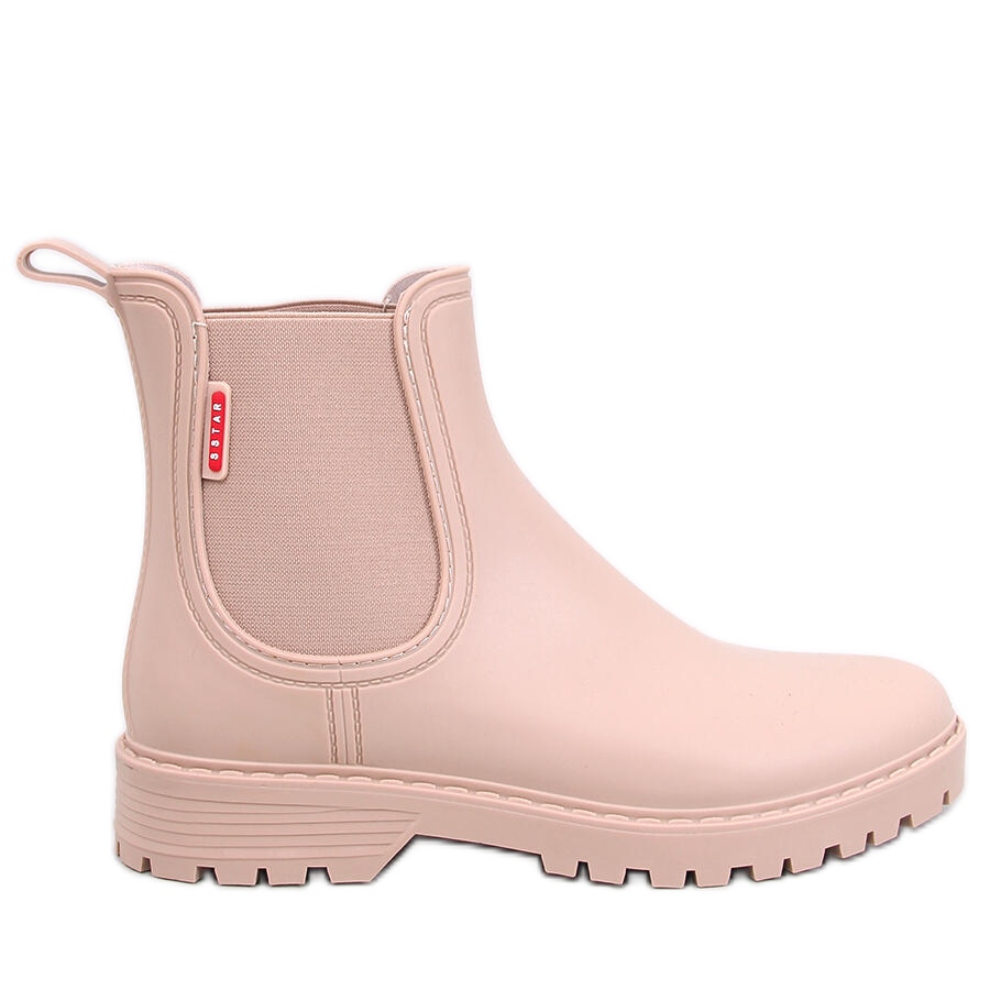 Cizme de cauciuc pentru femei cu pumnal tăiat într -o nuanță subtilă, mată de bej. Tăierea clasică cu inserții flexibile pe părțile laterale facilitează rapid și confortabil. Pentru gleznă, cu nas rotund și o talpă plată - perfectă pentru plimbări în ploaie și stilizări practice, practice.