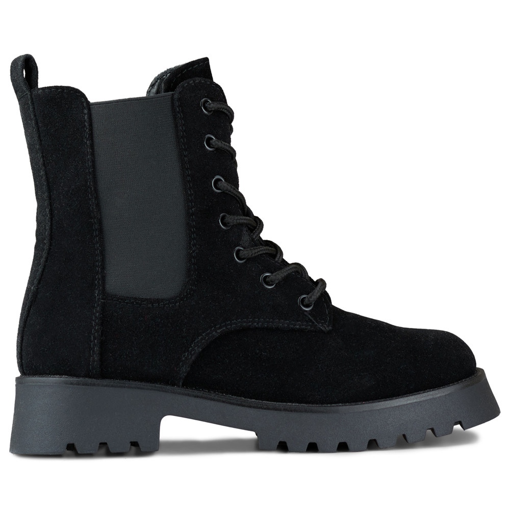 Detalii: Cizme chelsea cu șireturi pentru muncitori din piele intoarsa Klara negru