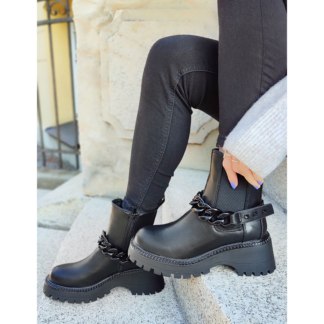 - Model: Cizme chelsea de dama cu lant detasabil