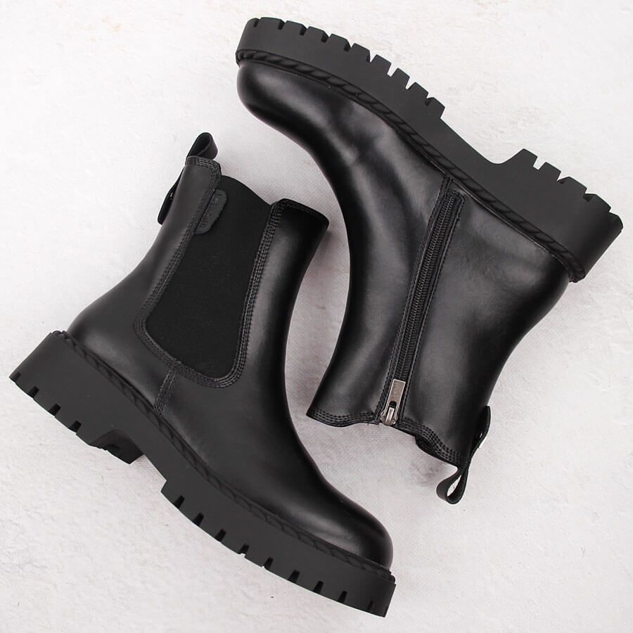 Big Star Cizme Chelsea de damă din piele, izolate negre Big Star OO274109 negru