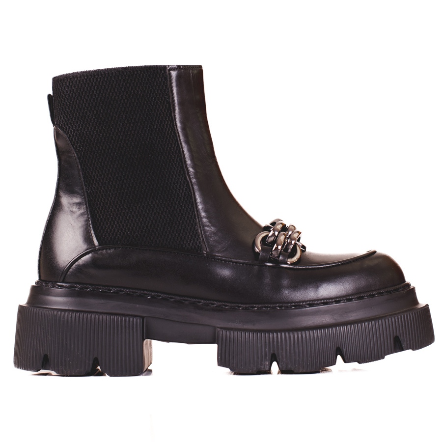 Descoperă eleganța și confortul în cizmele Chelsea de damă din piele pe platforma Shelovet! Aceste cizme negre sunt combinația perfectă de clasic și modern, perfecte pentru stilul de zi cu zi.