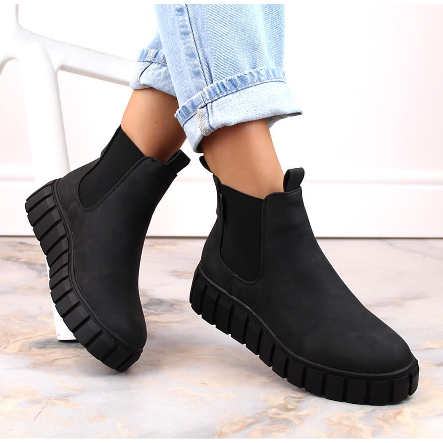 Big Star Cizme Chelsea de dama pe platforma neagra Big Star MM274324 negru