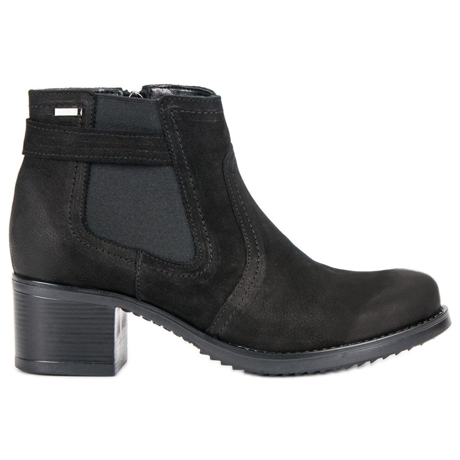 Vă prezentăm cizmele Chelsea din piele VINCEZA în negru - perfecte pentru femeile care apreciază eleganța combinată cu confortul în utilizarea de zi cu zi. Aceste cizme casual cu toc de 6 cm oferă nu doar un aspect elegant, ci și confort la purtare, datorită tălpii groase, care este perfectă pentru zilele ploioase.