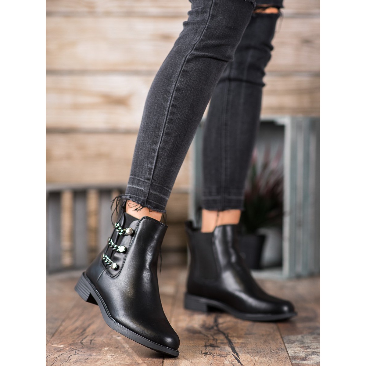SHELOVET Cizmele Chelsea negre elegante nu sunt doar încălțăminte, ci o adevărată declarație de stil și eleganță. Aceste cizme Chelsea de dama la moda intr-o culoare clasica neagra sunt confectionate din piele ecologica de inalta calitate, care asigura durabilitate si confort la purtare. O talpă sintetică profilată corespunzător garantează confort și stabilitate, chiar și în timpul plimbărilor lungi.