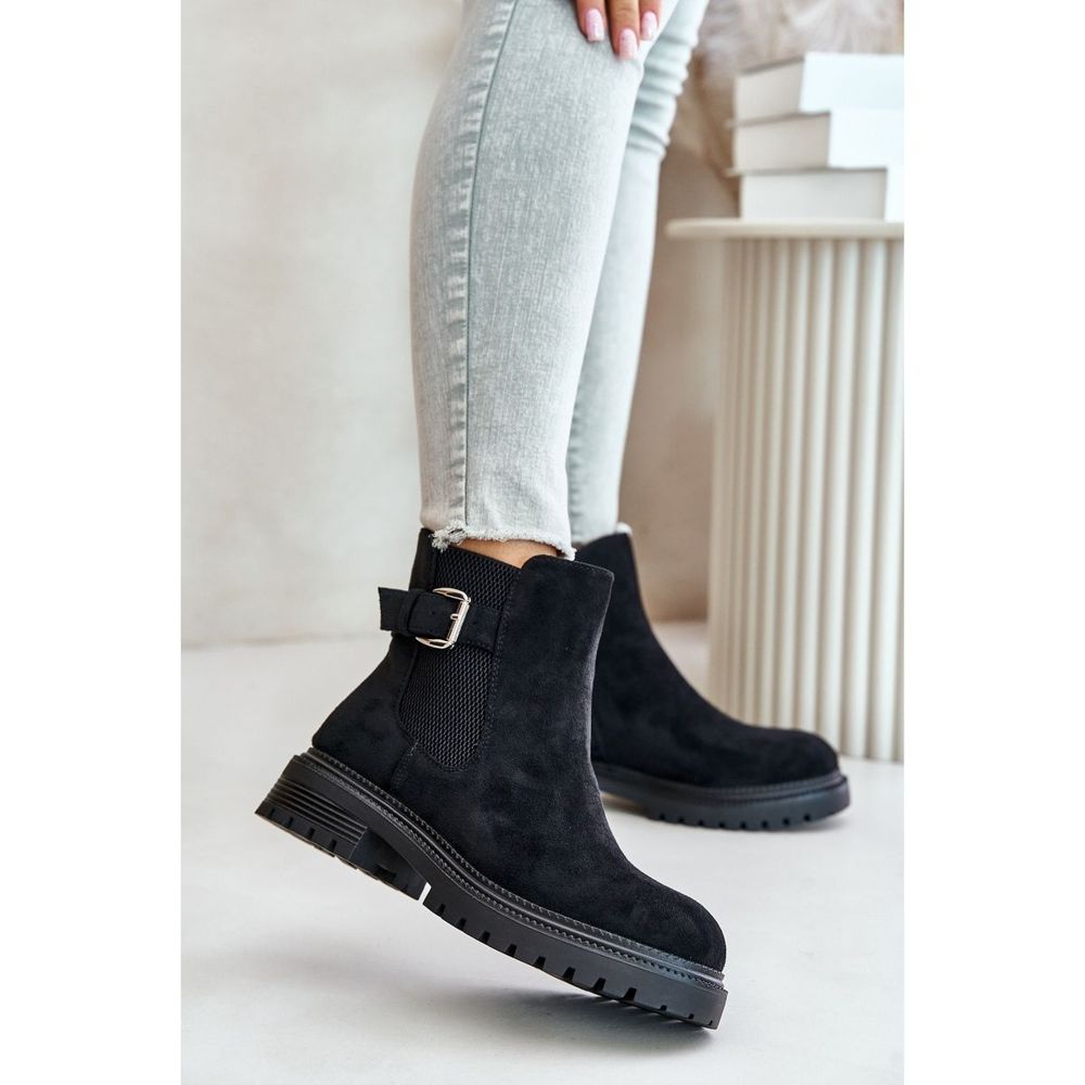Detalii: Cizme Chelsea izolate cu fermoar și cataramă, Black Kikiella negru