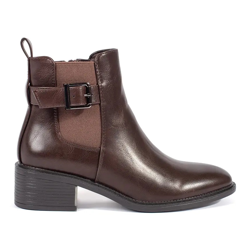 Detalii: Cizme Chelsea maro de dama cu catarama si tocuri inalte