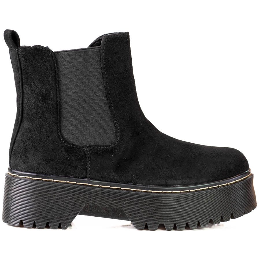 Detalii: Cizme Chelsea negre de dama pe platforma Shelovet din piele intoarsa ecologica negru