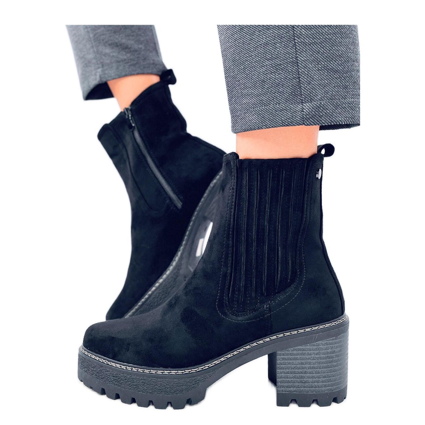 Calcul lor la modă, larg, cu o înălțime de 7 cm subliniază perfect figura și, în același timp, le face o alegere ideală pentru zile lungi petrecute pe picioare. Cizmele sunt echipate cu inserții flexibile și un fermoar practic, ceea ce face mai ușor să se pună și să decoleze. În plus, înălțimea platformei de 2,5 cm face ca întregul și mai confortabil.
