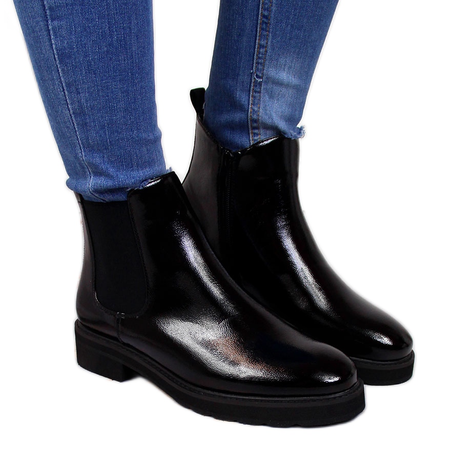 Detalii: Cizme Chelsea negru lacuite izolate Sergio Leone negru