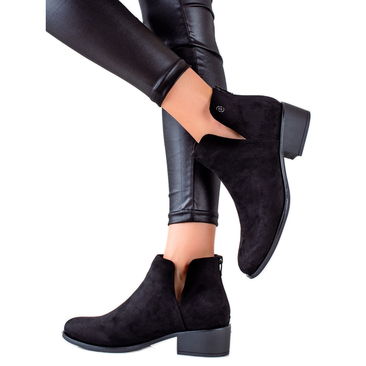 Cizmele Evento Classic Cutout în negru sunt alegerea perfectă pentru fiecare femeie care prețuiește stilul și confortul în fiecare zi. Confectionate din piele intoarsa ecologica de inalta calitate, aceste cizme Chelsea sunt elegante ca aspect si practice. Contorul de călcâi este închis și rigidizat, ceea ce asigură stabilitate și confort de purtare pe tot parcursul zilei.