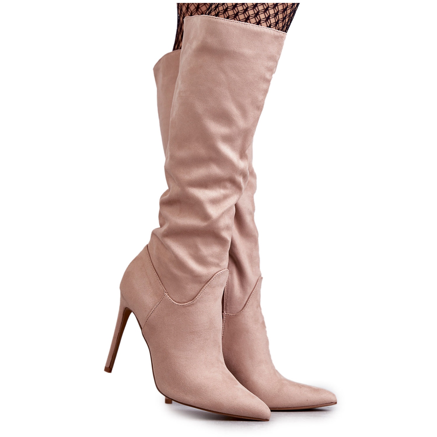 Detalii: Cizme clasice din piele intoarsa cu toc inalt Bej Ameya