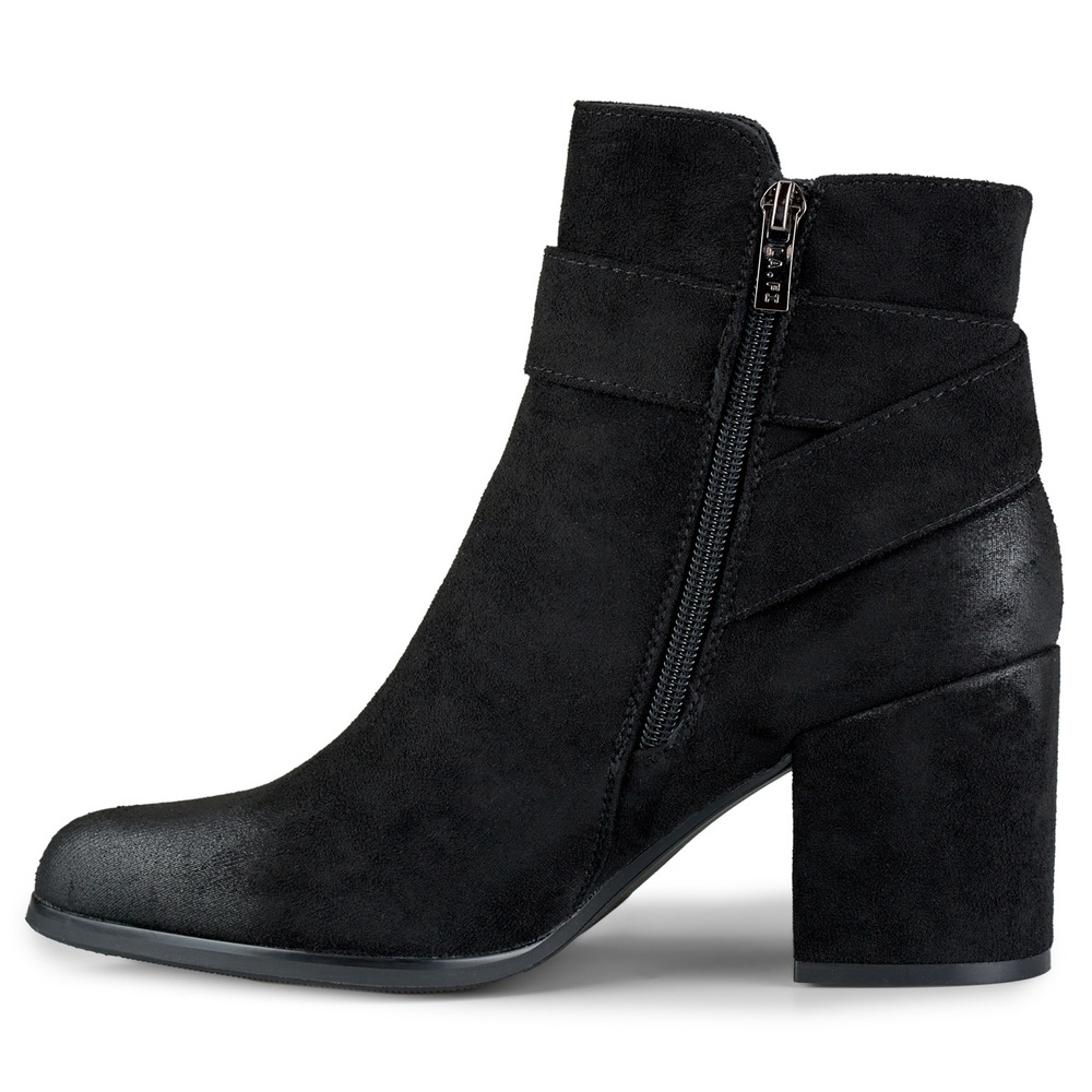 Cizme clasice negre pe Blaise Post - Eleganță și confort pentru zile mai răcoroase. Fabricat din piele de căprioară ecologică, cu o inserție izolată de blană Eko, asigură confortul și căldura în timpul sezonului de toamnă/iarnă. Un piston stabil cu o înălțime de 7,5 cm adaugă o tăietură la figură, fără a renunța la comoditatea purtării de zi cu zi.