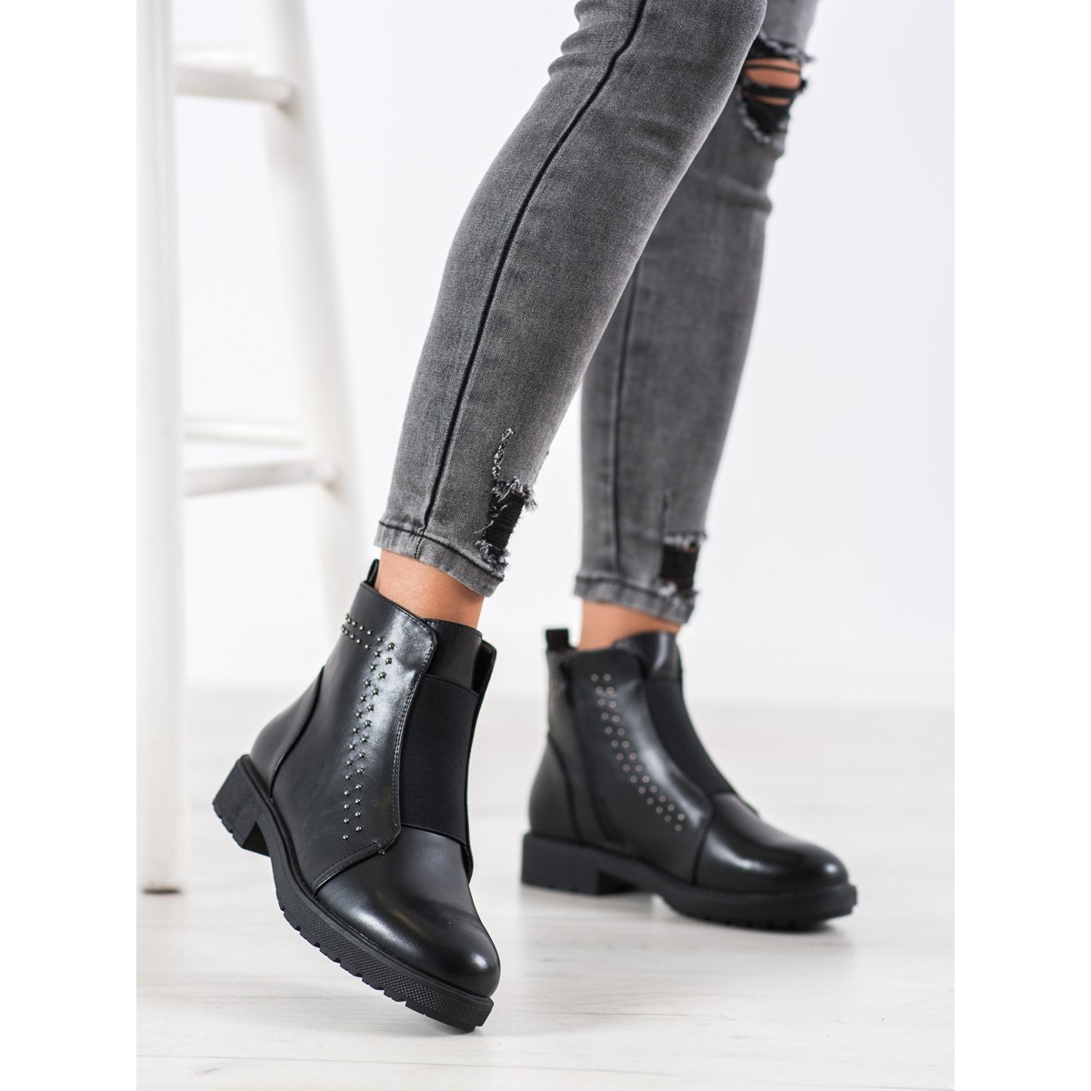 Datorita izolatiei, cizmele sunt perfecte pentru zilele mai reci, iar strasurile le dau un caracter subtil. Înălțimea superioară de 12-13 cm și un toc plat de 3,5 cm fac ghetele confortabile și stabile la fiecare pas. Un avantaj suplimentar este fermoarul, care ușurează încălțarea și scoaterea pantofilor.