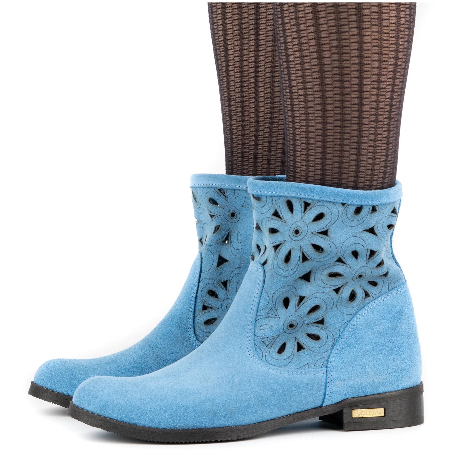 Cizmele au un model ajurat pe partea superioară, adăugând o eleganță subtilă. Înălțimea lor ajunge deasupra gleznei, iar încărcarea se face mai ușoară cu un fermoar care se întinde pe toată lungimea pantofului. Talpa pantofilor este sintetică, iar branțul este tot din piele naturală.