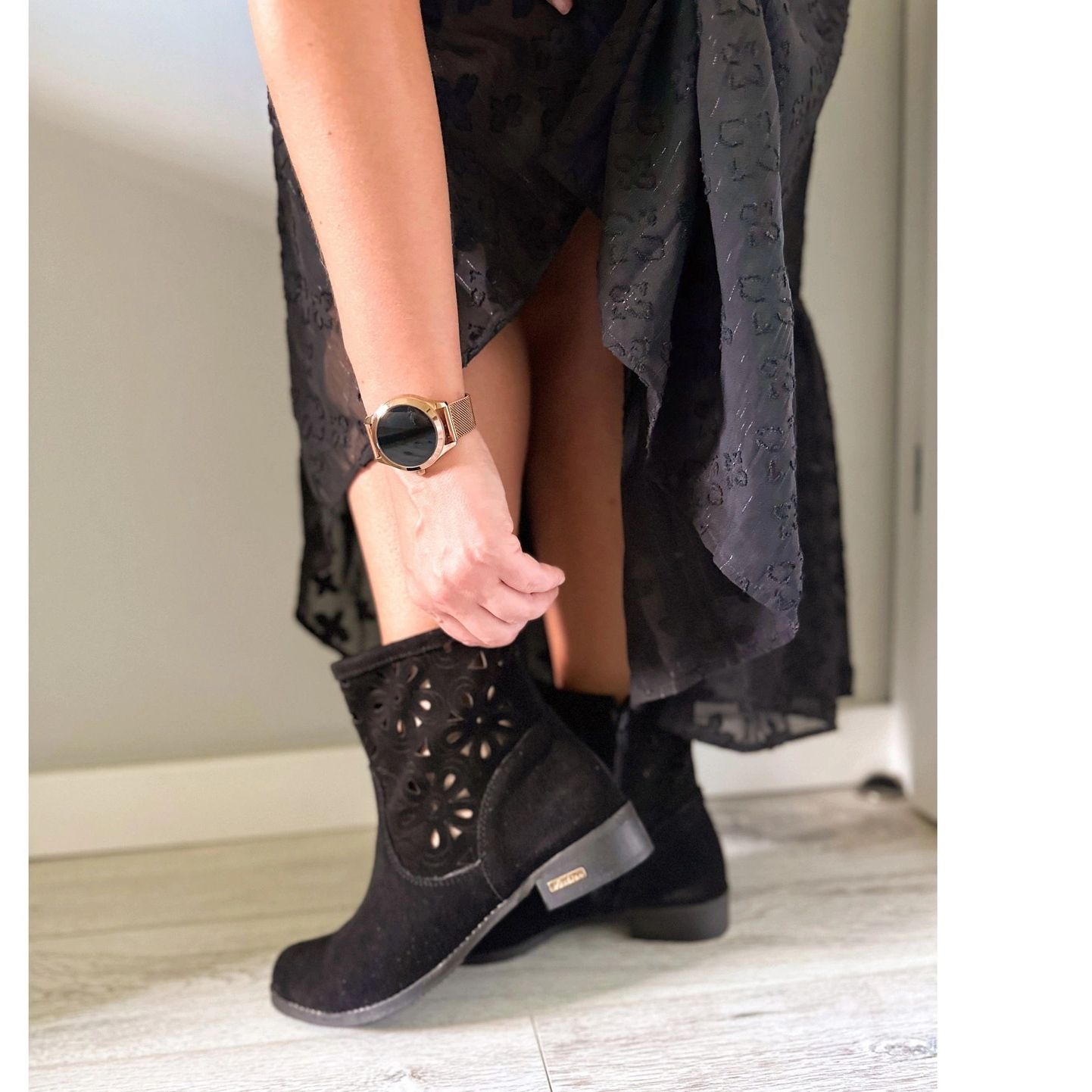 Olivier Olivier Cizme confortabile cu deschizături negre Alice negru