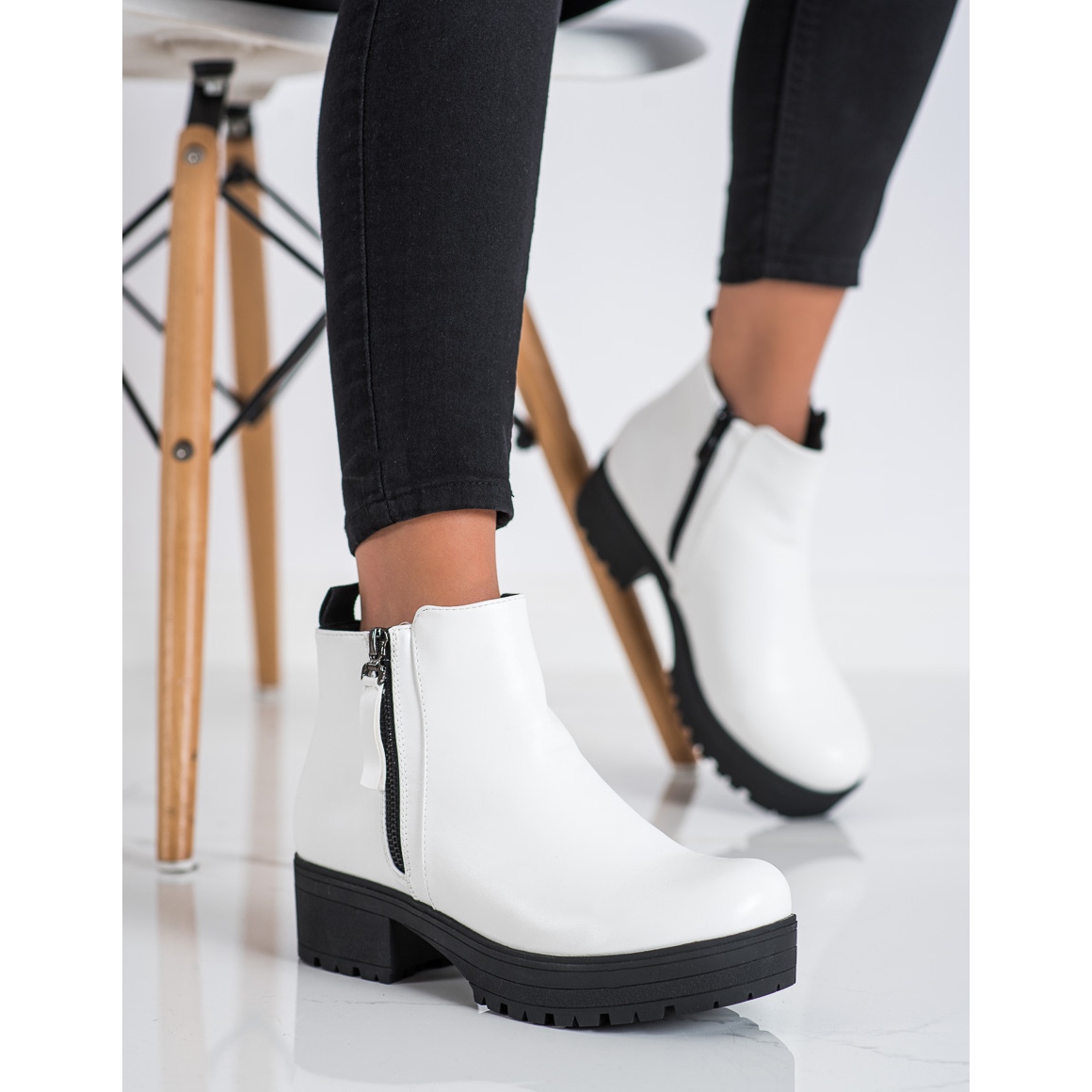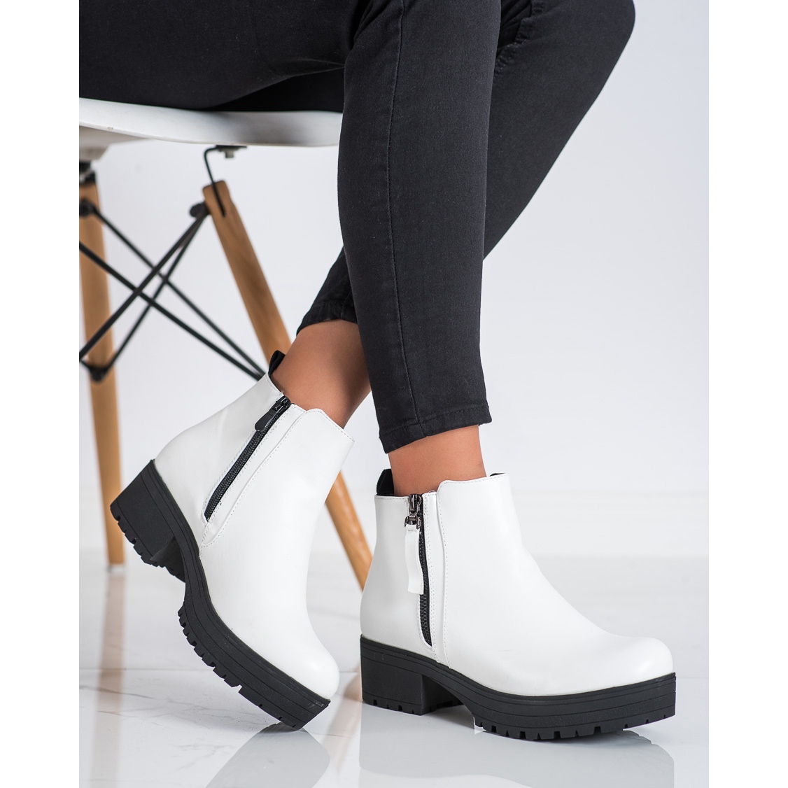 Descoperiți eleganța și confortul într-una singură, alegând botine cu platformă Clowse în alb. Acești pantofi extraordinari, creați cu gândul la femei, sunt complementul perfect pentru stilul de zi cu zi. Realizate din piele ecologica, cu izolatie placuta, ofera caldura in zilele mai reci de toamna si iarna.