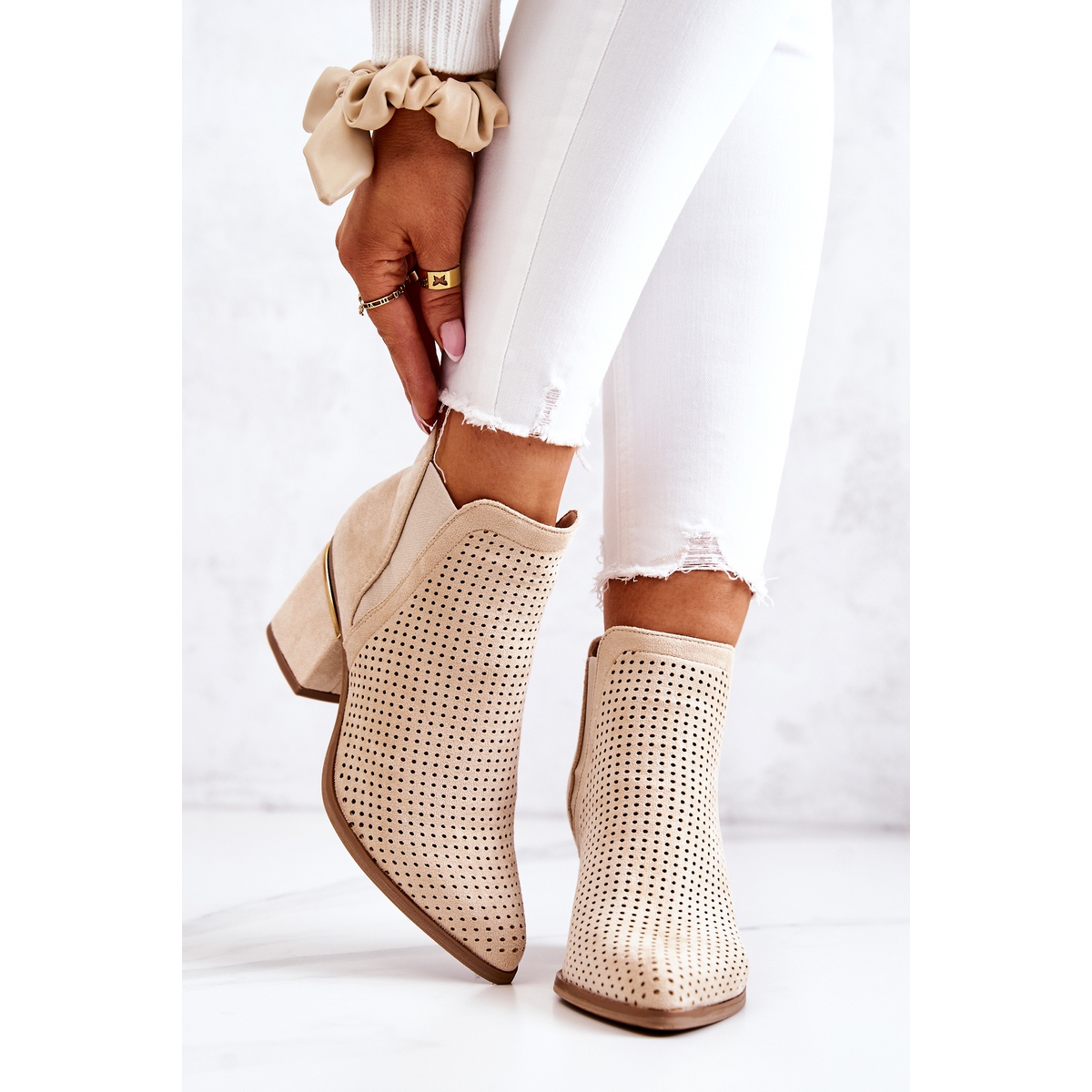 Detalii: PS1 Cizme cowboy ajurate din piele intoarsa Helloni bej deschis
