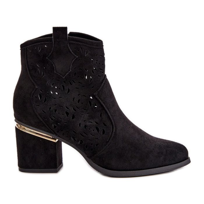 Detalii: Cizme Cowboy Ajurate Pe Toc Înalt, Prinse Cu Fermoar, Vosilara Neagră negru