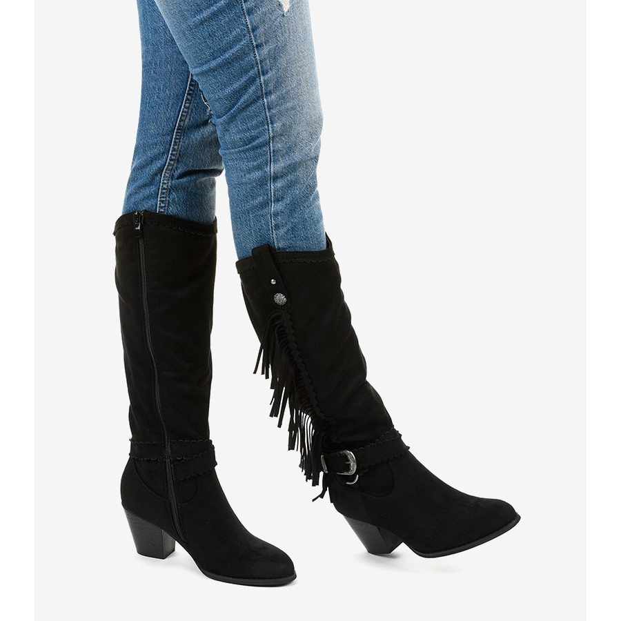 Detalii: Cizme cowboy de piele de căprioară neagră negru