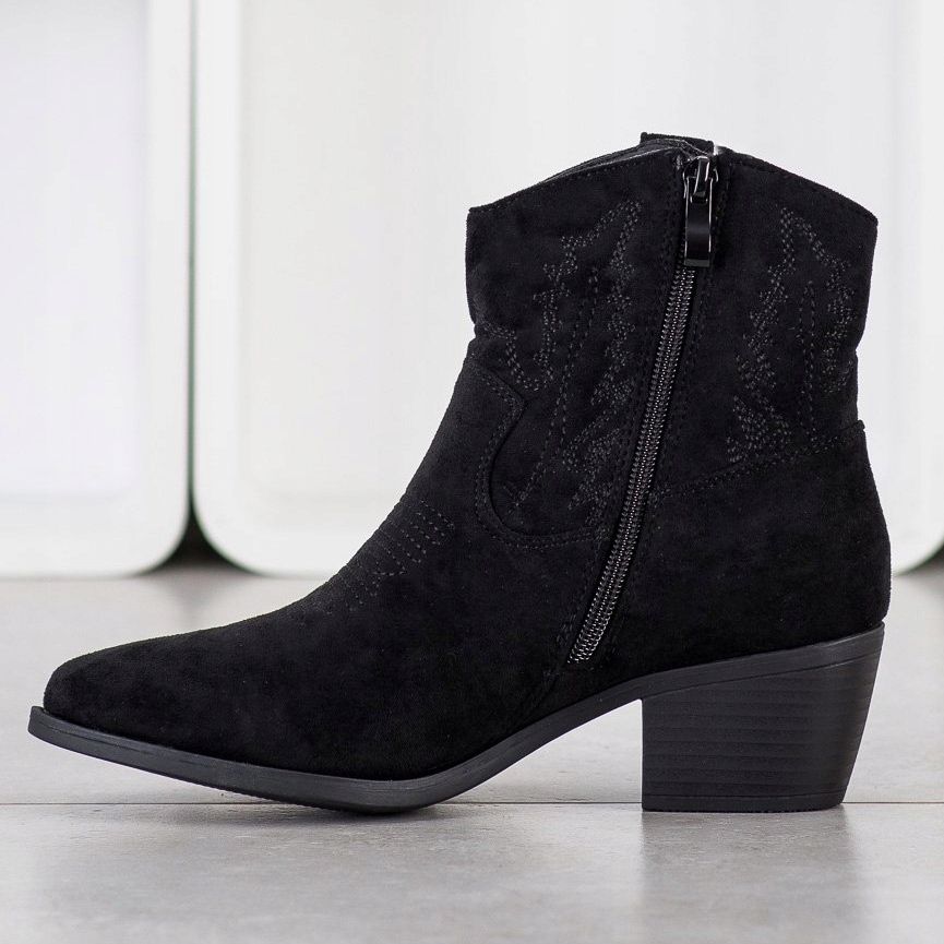 Cizmele de cowboy au toc incorporat, moale, care asigura confort pe tot parcursul zilei, atat in timpul activitatilor de zi cu zi cat si la serbarile speciale. Înălțimea tocului de 5,5 cm și stâlpul clasic adaugă eleganță, oferind în același timp o stabilitate adecvată. Datorită feței de slăbire (înălțime 11-12 cm) deasupra gleznei, silueta arată excepțional de bine.
