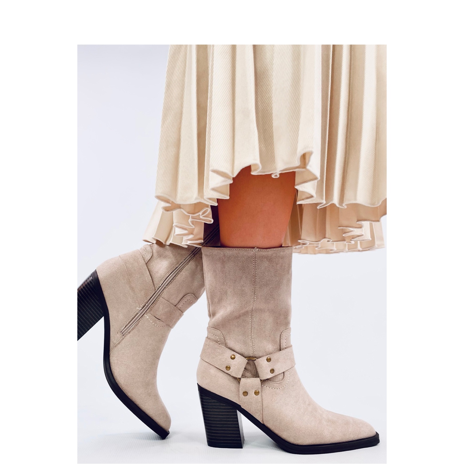 Descoperiți stilul extraordinar și confortul în cizmele de cowboy din piele de căprioară bej! Acest model la modă, creat din piele de căprioară ecologică, vă va atrage cu siguranță ochii datorită tăierii neobișnuite cu degetele de la picioare pătrate. Supertul înalt adaugă caracter, iar fixarea cu fermoar pe partea superioară a superiorului face ca punerea și îndepărtarea pantofilor rapid și confortabil.