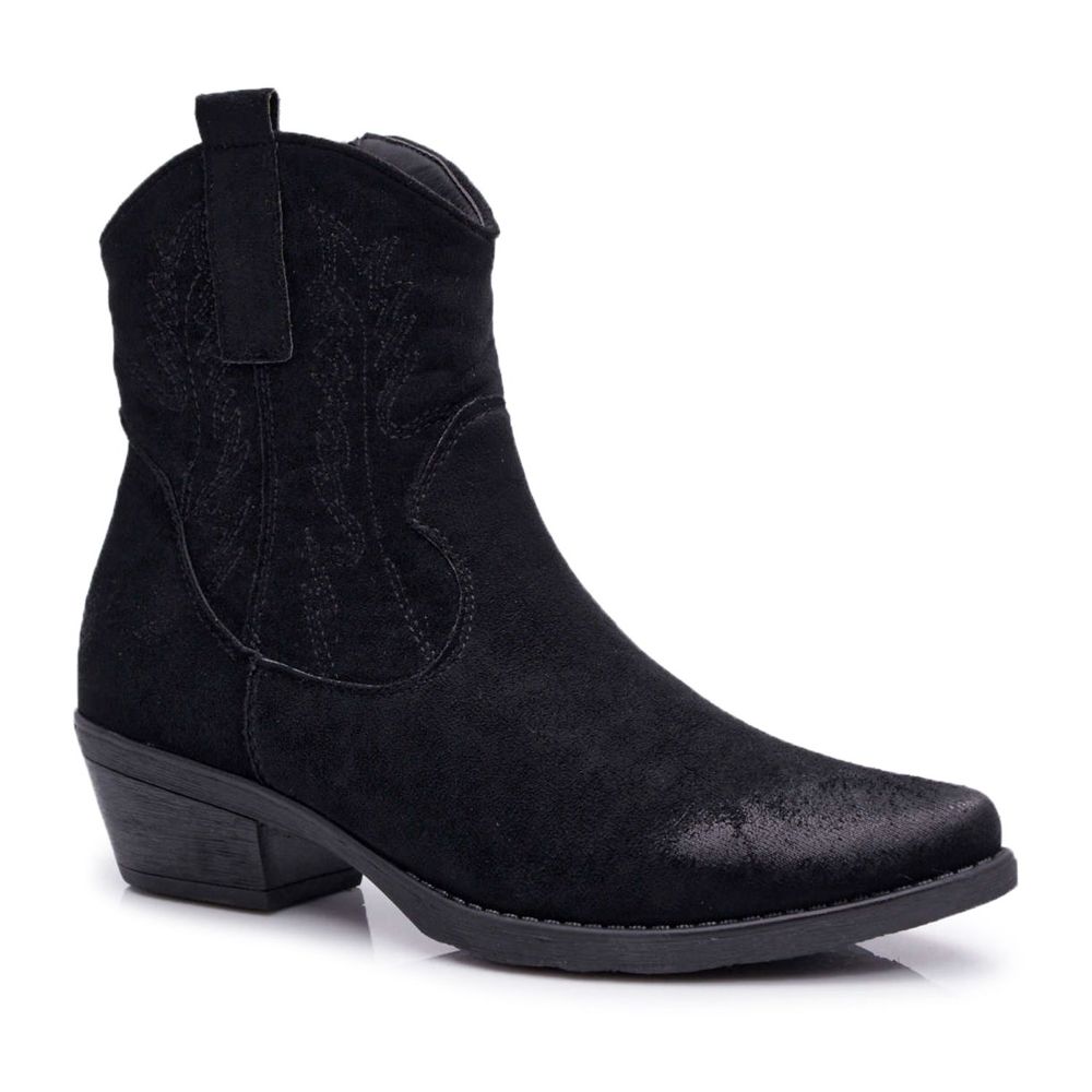 Detalii: BUGO Cizme Cowboy Femei Suede Negre Ferders negru