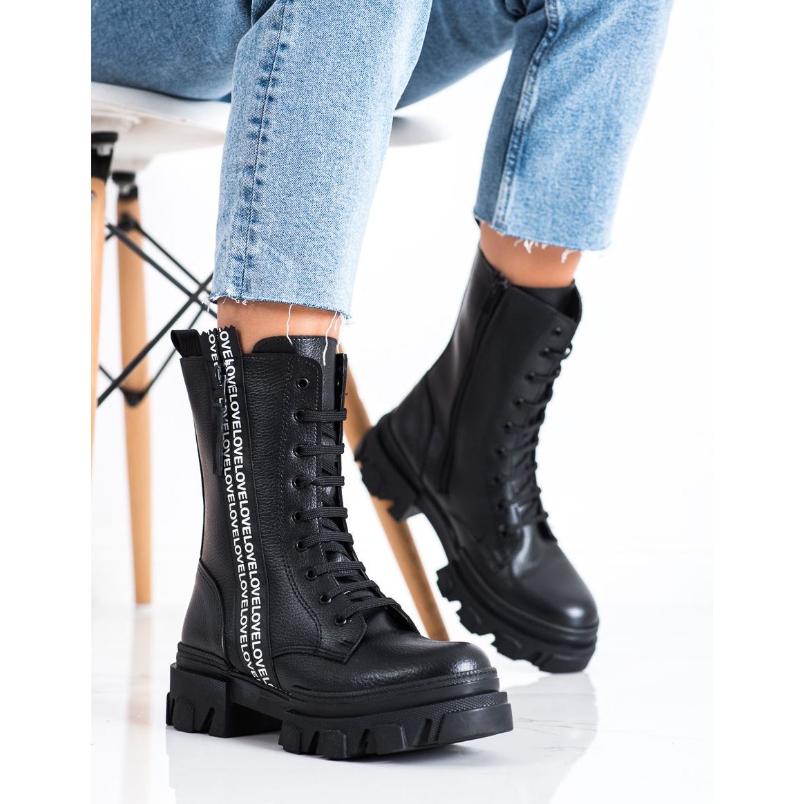 Descoperiți moda și confortul într-o singură dată datorită cizmelor bovver SHELOVET confecționate din piele ecologică Love într-o culoare clasică neagră. Acești pantofi de damă sunt alegerea perfectă pentru utilizarea de zi cu zi, potrivindu-se perfect cu stilul casual, rock și fashion.