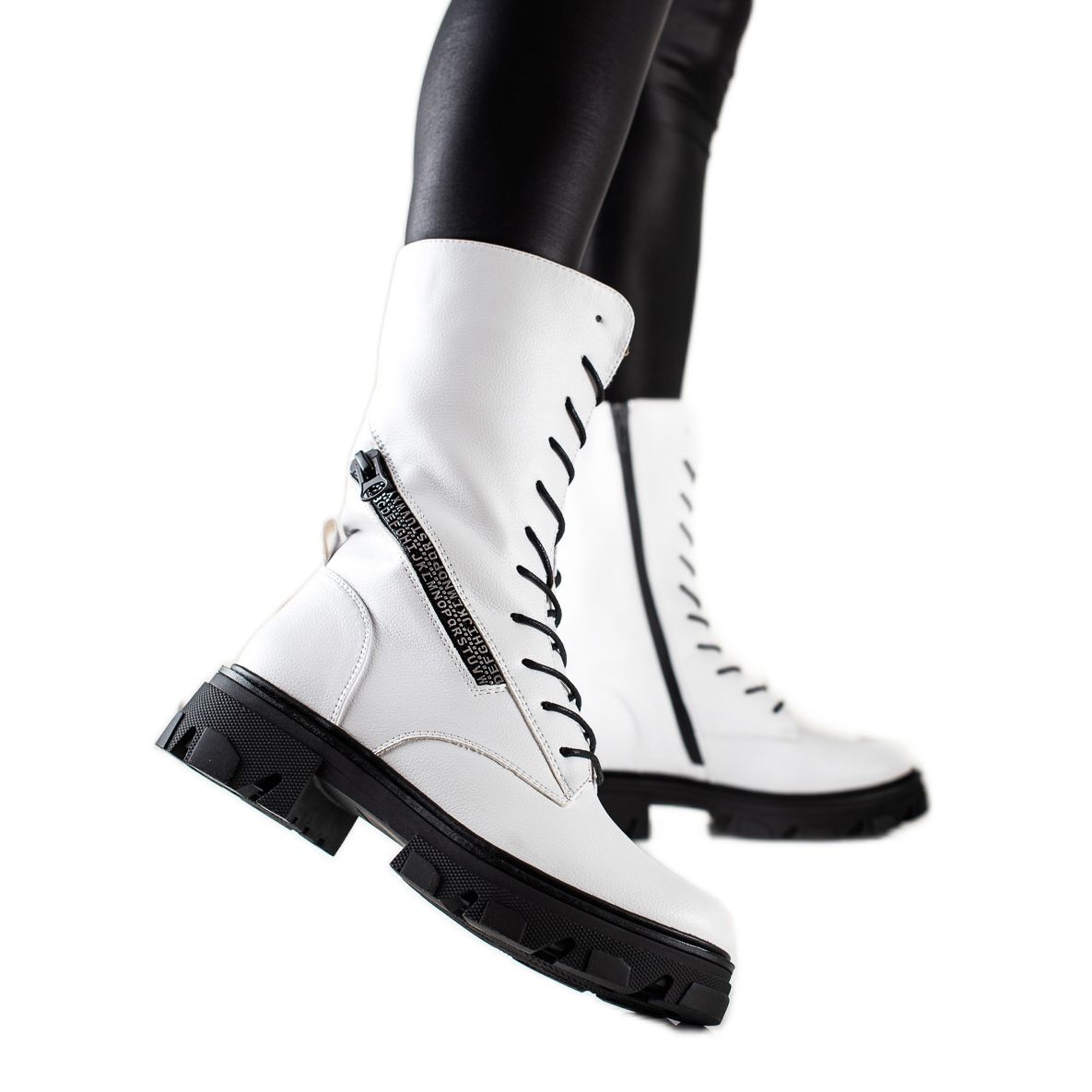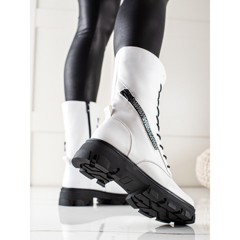 Detalii: Cizme cu fermoar decorativ de Sergio Leone alb