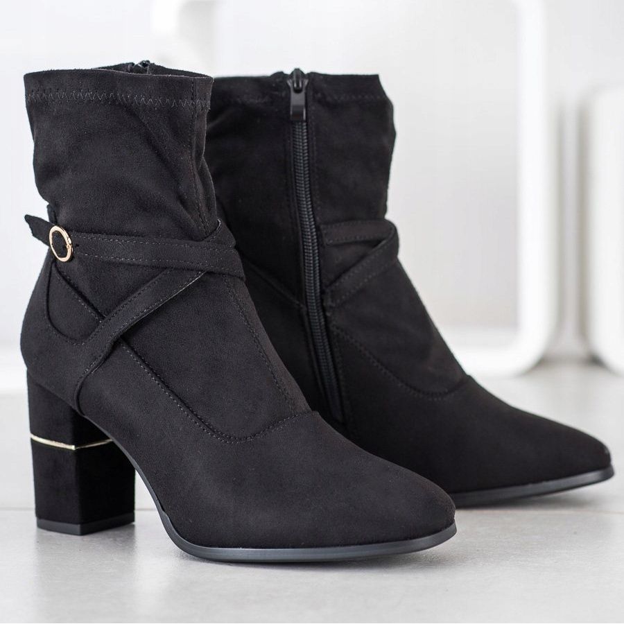 Lăsându-ți piciorul așezat confortabil, tocul lat de 8 cm înalt, care este și decorat cu o inserție aurie, va face ca fiecare dintre stilurile tale să arate elegant. Aceste botine se potrivesc perfect în moda casual și sunt perfecte pentru ieșirile de seară sau sărbători.